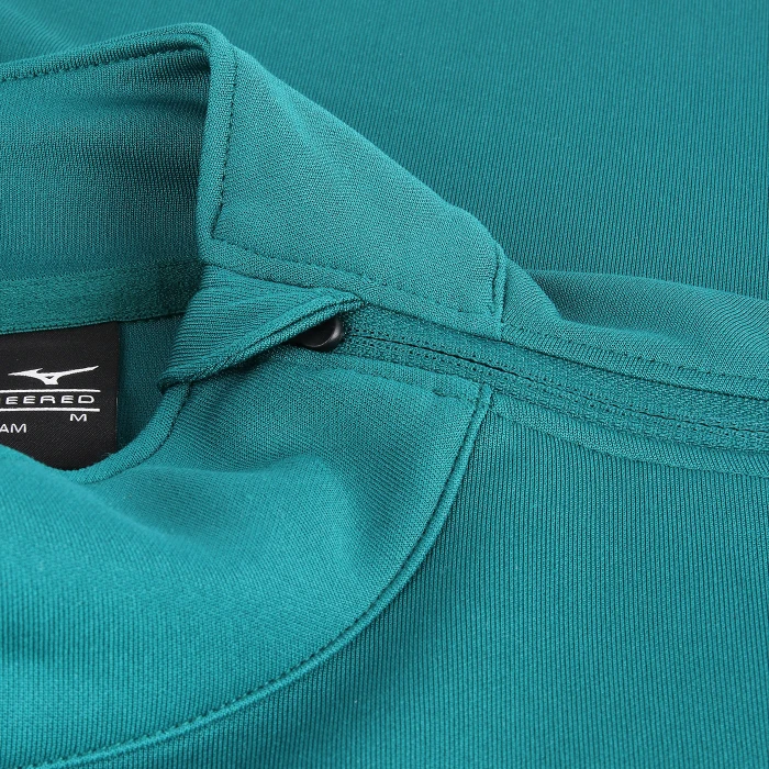 Stemma del club e logo Mizuno applicati a caldo sul petto. Nastro termosaldato a contrasto su entrambe le maniche.